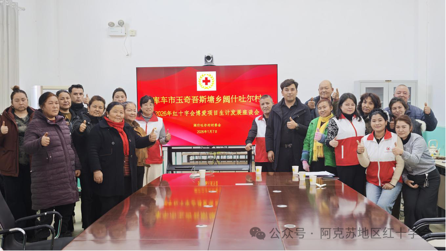 2026年1月7日下午库车市红十字会联合玉奇吾斯塘乡红十字会在玉奇吾斯塘乡阔什吐尔村村委会召开2026年红十字“博爱家园”生计金发展座谈会,为阔什吐尔村红十字“博爱家园”项目8万元生计金的深入推进把脉定向。