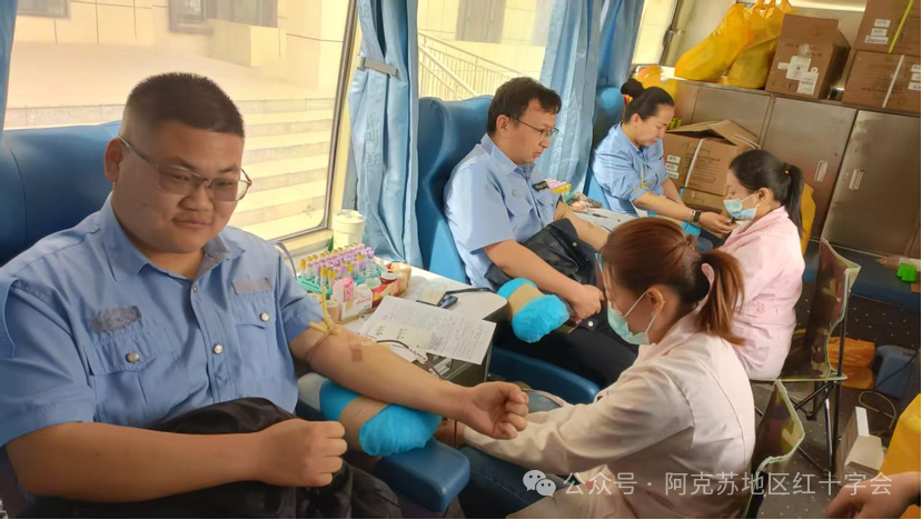 2025年4月21日,为积极响应国家卫生健康委发布的关于无偿献血的倡议,沙雅县红十字会积极与县公安局对接,组织公安民警无偿献血,推进团体无偿献血工作,以实际行动诠释了人民公安的热血初心和大爱担当。