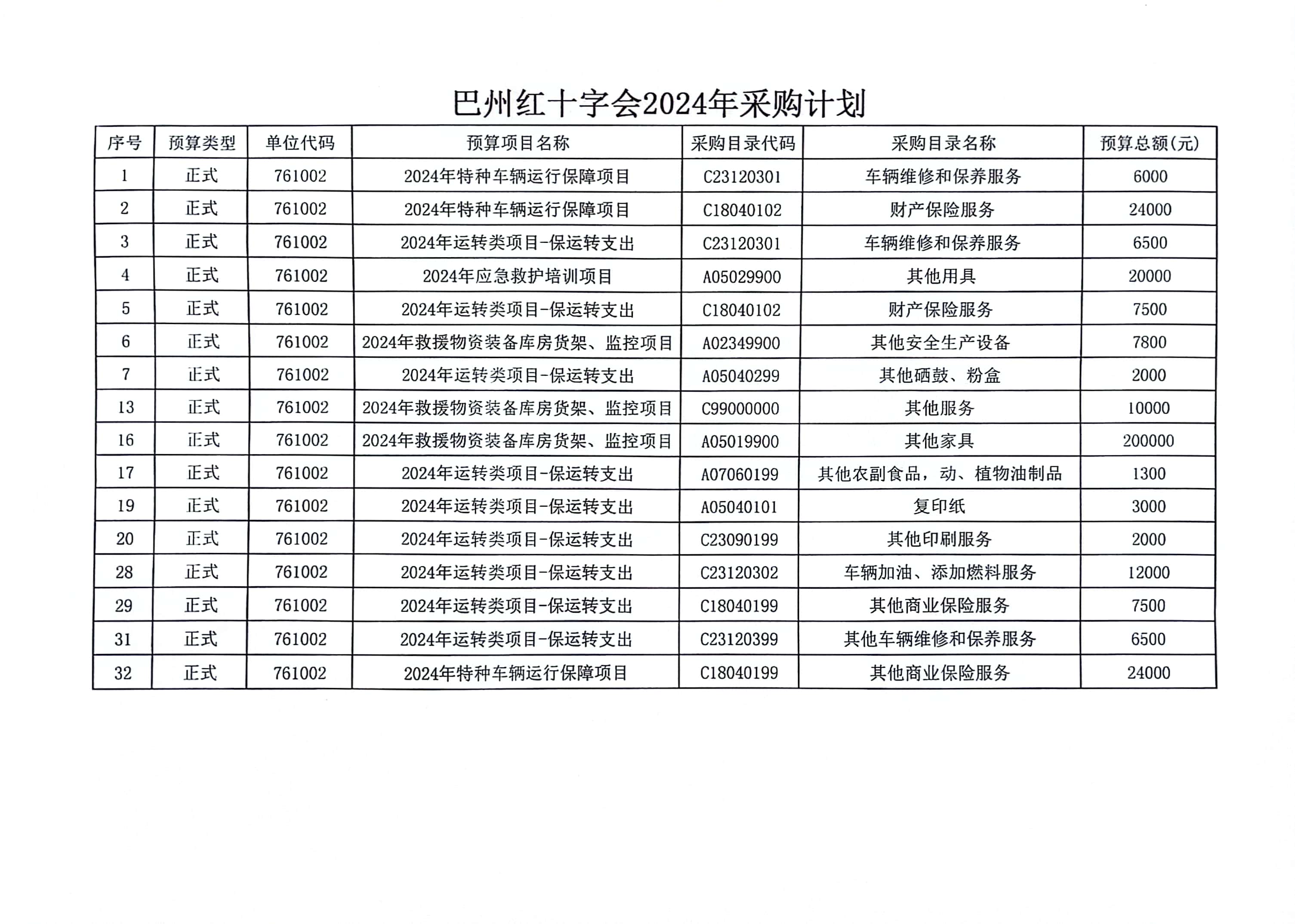 2024年巴音郭楞蒙古自治州红十字会采购信息