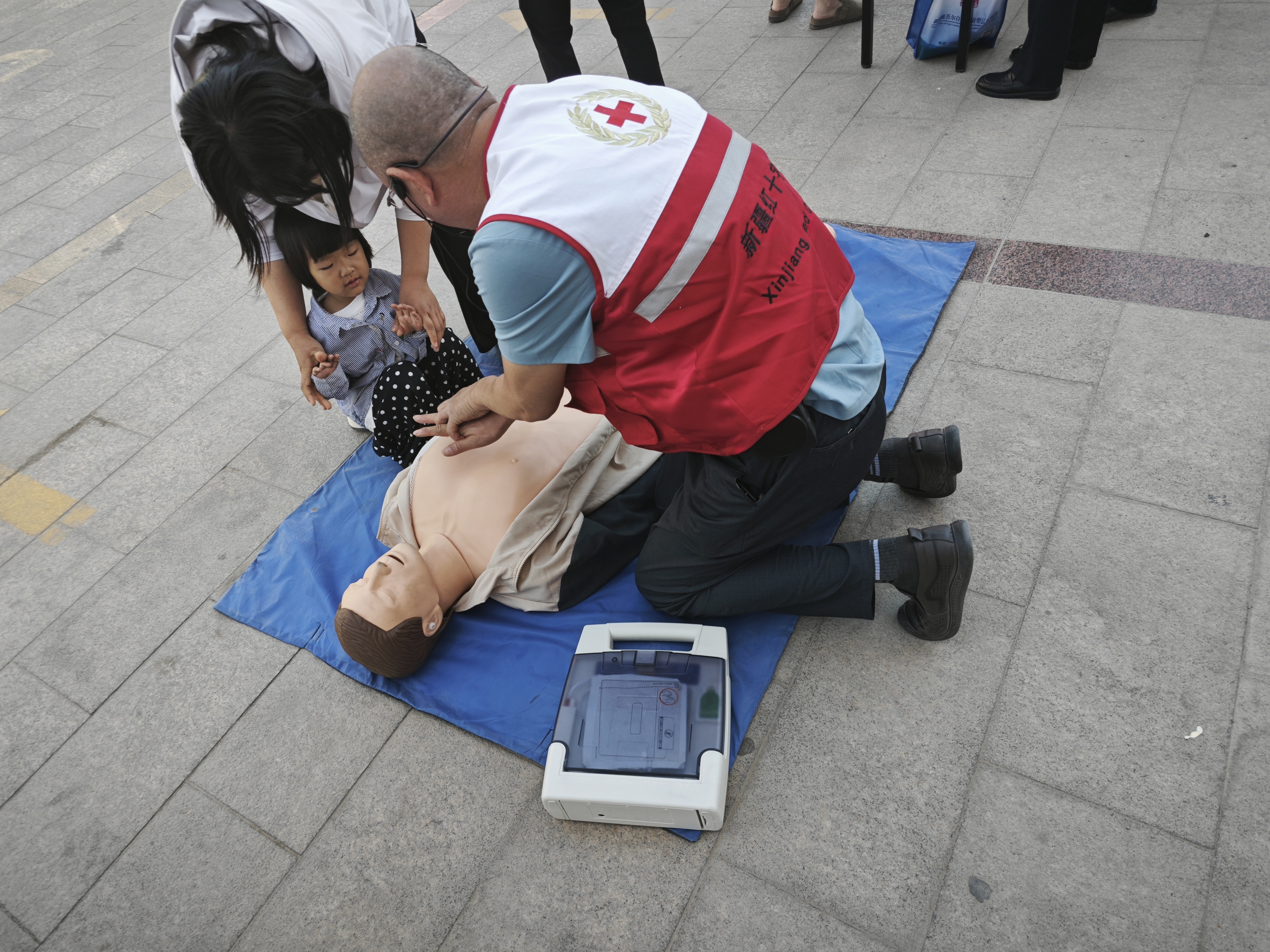 活动主要以讲授应急救护中的心肺复苏操作为主,同时普及应急救护常识,现场群众积极参与并学习规范操作动作。