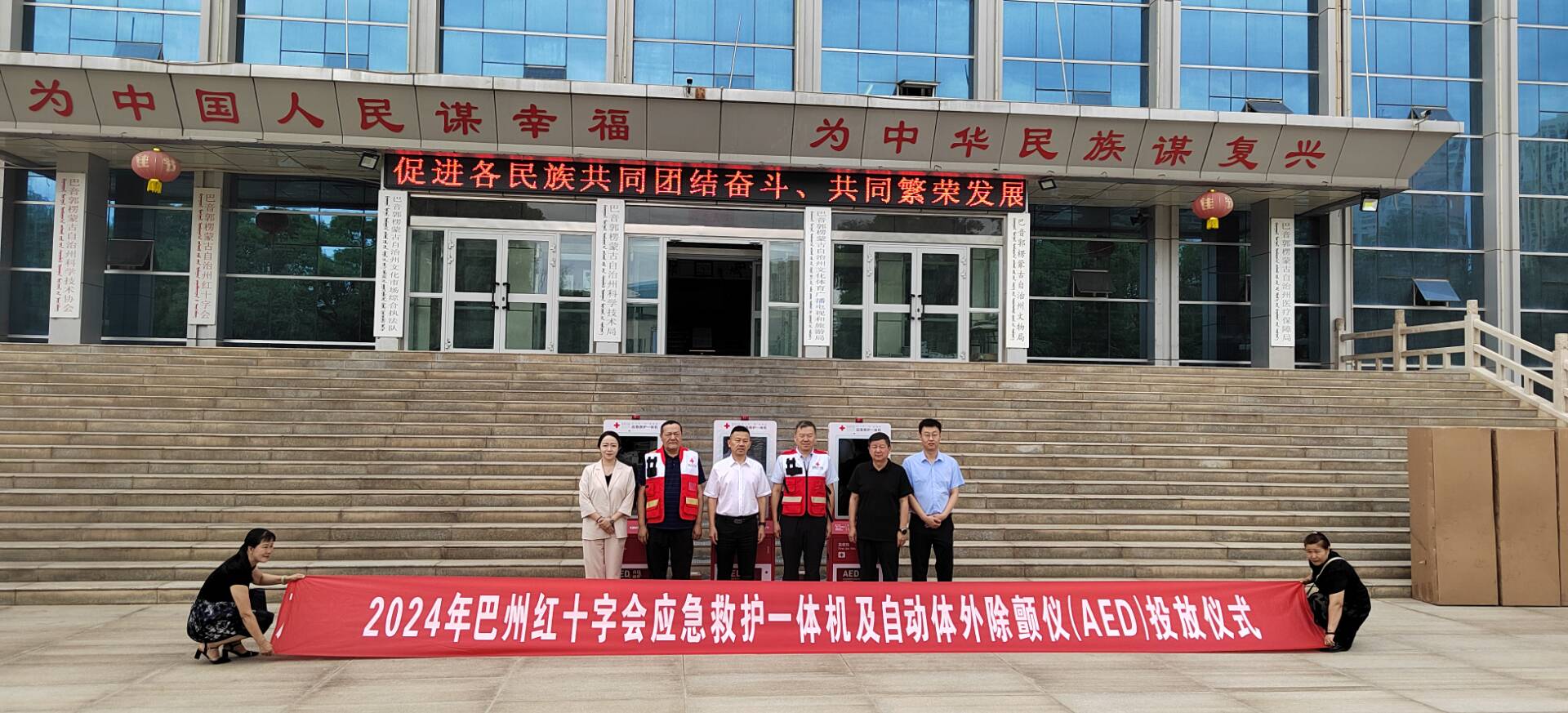 为弘扬“人道、博爱、奉献”的红十字精神,大力实施“红十字救在身边”行动,加强人员密集场所红十字应急救护一体机的配备,进一步提高全民安全防范意识和应急救护能力,营造人人学急救、会急救、敢急救的良好社会氛围,更好守护人民群众的生命安全,2024年8月1日,巴州红十字会应急救护一体机投放仪式及应急救护知识与技能培训,分别在巴州红十字会培训中心及巴音郭楞融媒体中心负1楼同时举行。
