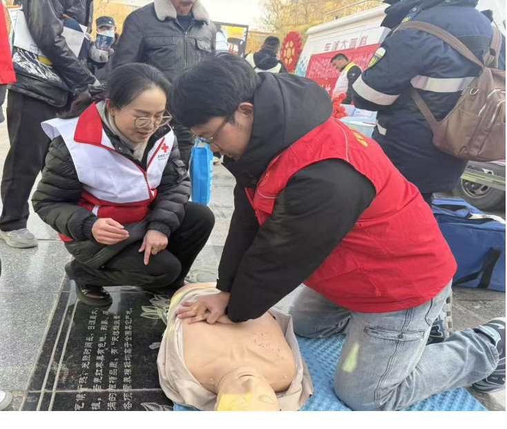 开展应急救护实操培训,采用理论讲解+实操演示+互动纠错的经典模式,由红十字救护师资围绕重点讲解应急救护基础内容,借助模拟人,手把手演示心肺复苏(CPR的按压位置、力度频率,一对一指导群众现场实操,及时纠正动作偏差,确保参与者听得懂、学得会、用得上,有效提升基层群众应对突发情况的自救互救能力。