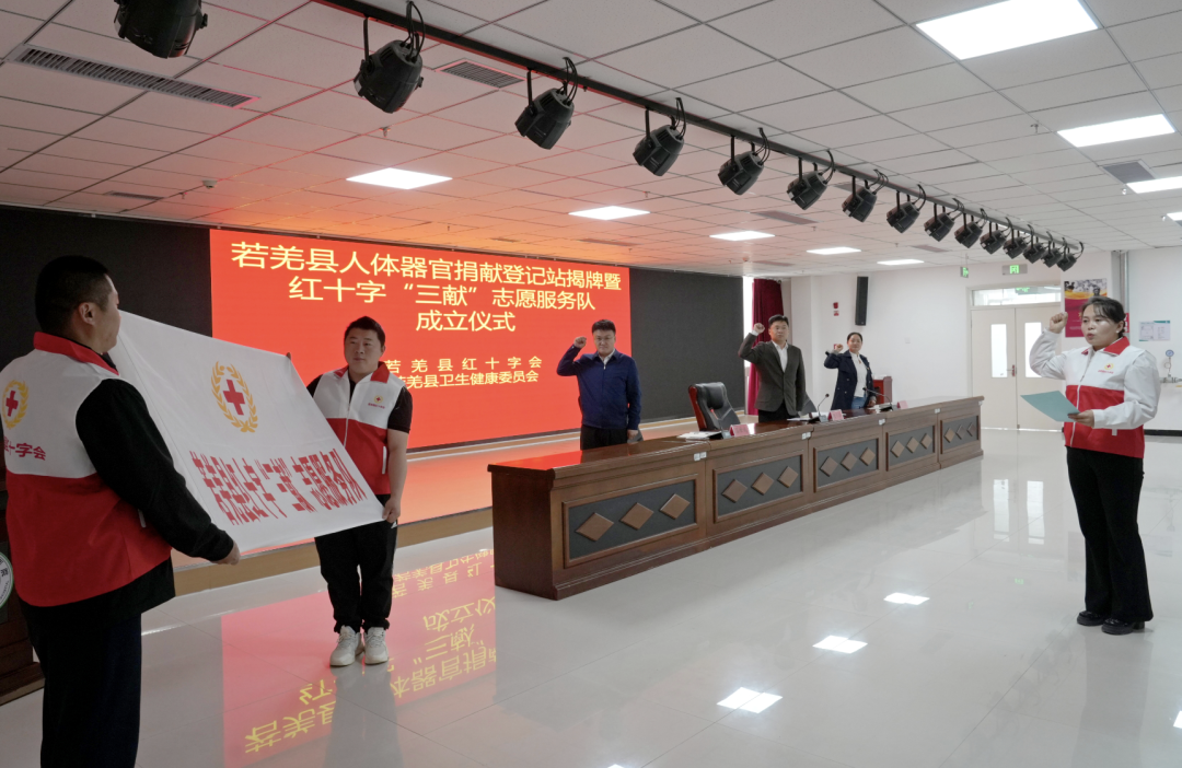 为深入弘扬“人道、博爱、奉献”的红十字精神,切实履行《中华人民共和国红十字会法》相关职责,积极推动无偿献血和人体器官捐献工作,有序开展造血干细胞捐献相关事务,凝聚社会爱心力量,为生命延续保驾护航,4月11日,若羌县红十字会联合县卫健委在县人民医院举行人体器官捐献登记站揭牌暨红十字“三献”志愿服务队成立授旗仪式。