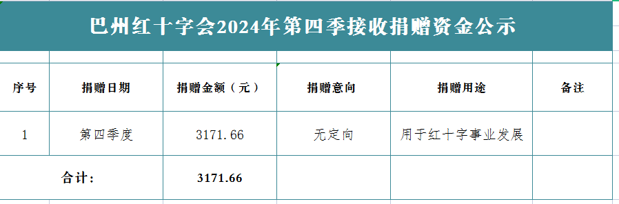 为深入贯彻落实《中华人民共和国红十字会法》《中华人民共和国公益事业捐赠法》《中华人民共和国慈善法》《中国红十字会信息公开标准》,打造公开透明的红十字会,现将巴州红十字会2024年第四季度捐赠物资拨付使用情况示如下: