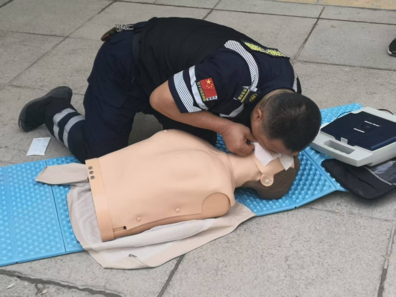 强化安全意识与提升救援技能是本次活动的实践重点。结合文旅行业安全管理需求,库尔勒市红十字应急救援队发挥专业特长,精心组织了应急救护技能培训与实战演练。救援队骨干队员担任培训师,围绕心肺复苏(CPR)、创伤包扎、自动体外除颤器(AED)使用等核心技能,采取“理论讲解+现场演示+实操指导”的模式,为文旅公司党支部党员进行了系统性培训。在天鹅河景区模拟演练现场,救援队员手把手指导参训党员进行伤员转运、应急避险等操作,及时纠正不规范动作,确保每位党员掌握规范、高效的救援技巧。