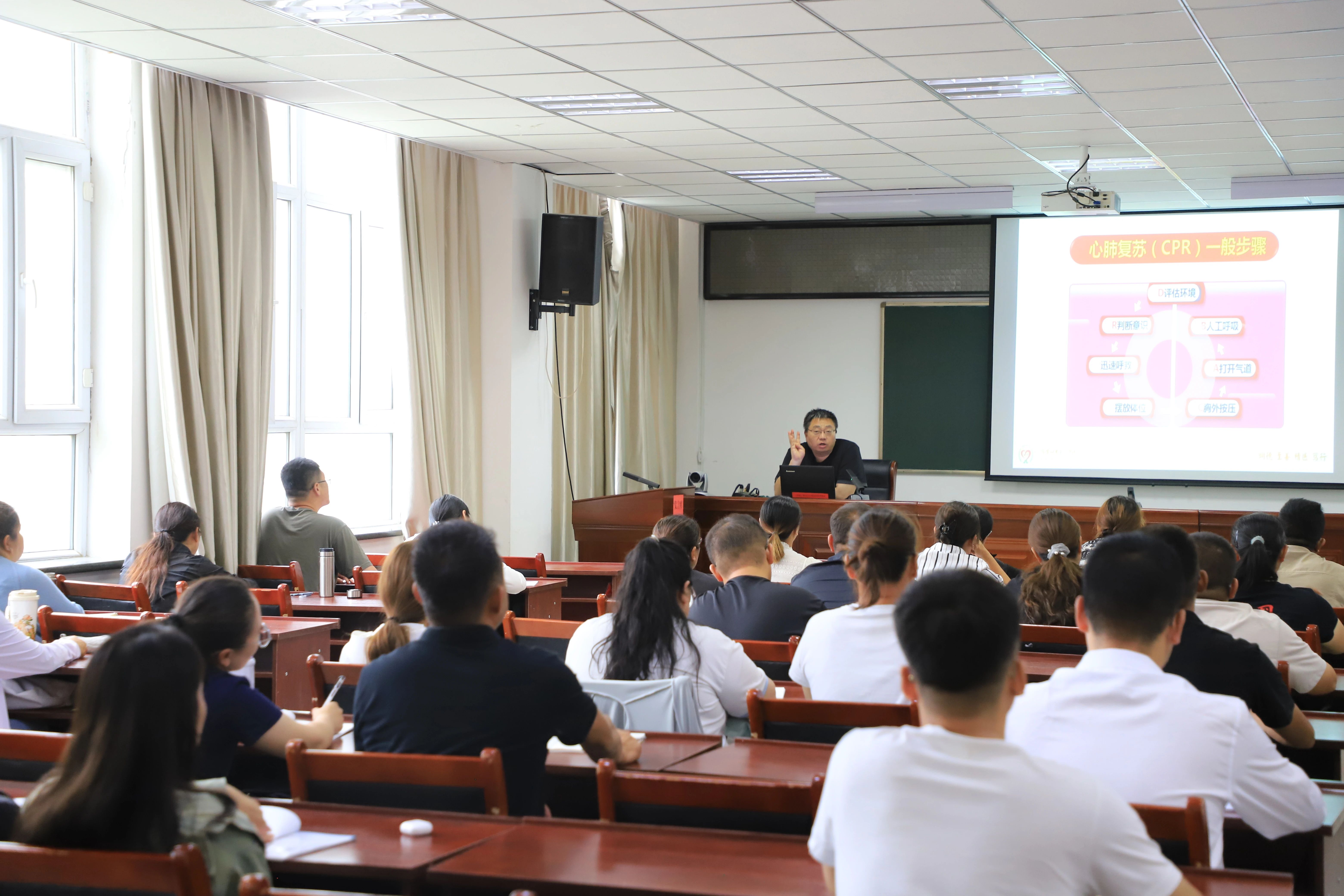 培训特邀临床经验丰富的和硕县人民医院党委书记、副院长母文利主讲。他以“黄金4分钟”为切入点,深入浅出地讲解了心肺复苏的重要性——“心搏骤停后,每延误1分钟,患者生存率下降10%,6—10分钟脑细胞死亡,超过10分钟,生存希望极低。”随后,他从“评估环境安全—判断意识与呼吸—快速呼救—胸外按压—开放气道—人工呼吸”六大步骤展开,详细演示了操作要点。针对学员关心的施救过程中可能遇到的风险等问题,母文利还结合案例逐一解答,强调“规范操作比速度更重要”,避免因不当施救造成二次伤害。