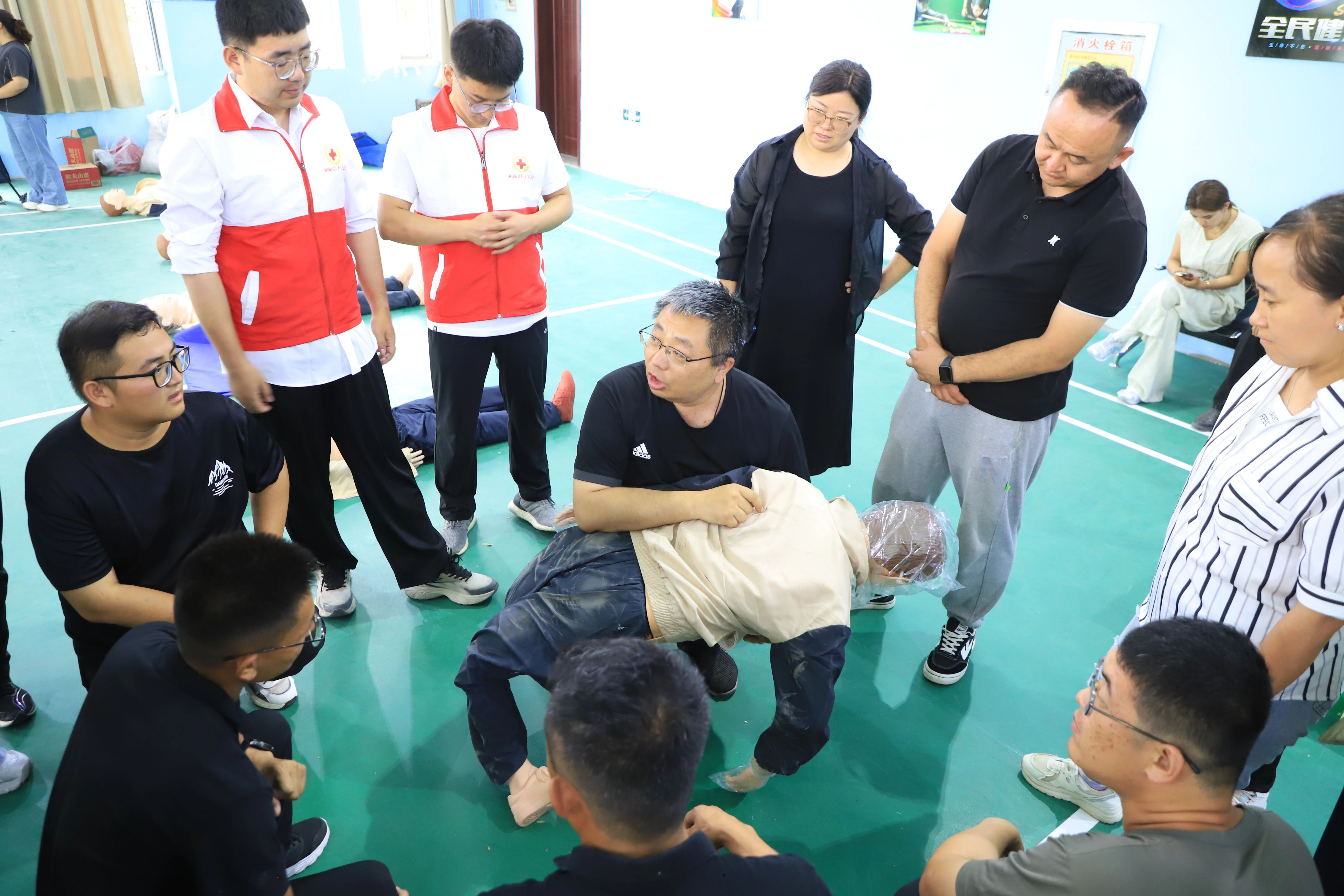 在实操练习环节,学员们分组使用心肺复苏模拟人进行现场操作。母文利和红十字志愿者全程指导,及时纠正“按压位置偏移”“力度过轻”等问题。参与培训的学员宋雨洁说:“之前总觉得急救是专业人员的事,今天才知道普通人也能成为‘第一响应者’。此次培训非常实用,让我学会了心肺复苏这项关键的急救技能。以前遇到紧急情况可能会不知所措,现在有了这些知识和技能,以后再遇到类似的情况,我就有信心伸出援手,帮助他人。”