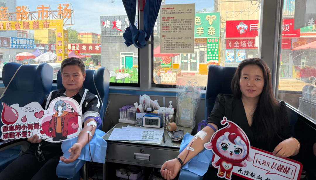 近日,在吉木萨尔县老电影院门口停着一辆采血车,车身上红色的无偿献血标志,在灿烂的阳光下显的格外醒目。苏米奈刚收到一条关于无偿献血的短信,她眼眸中闪过一丝坚定,随即便挽起丈夫的胳膊笑着说道:“正好今天有空,咱们一起献血去。”说罢,两人朝着采血车的方向走去。