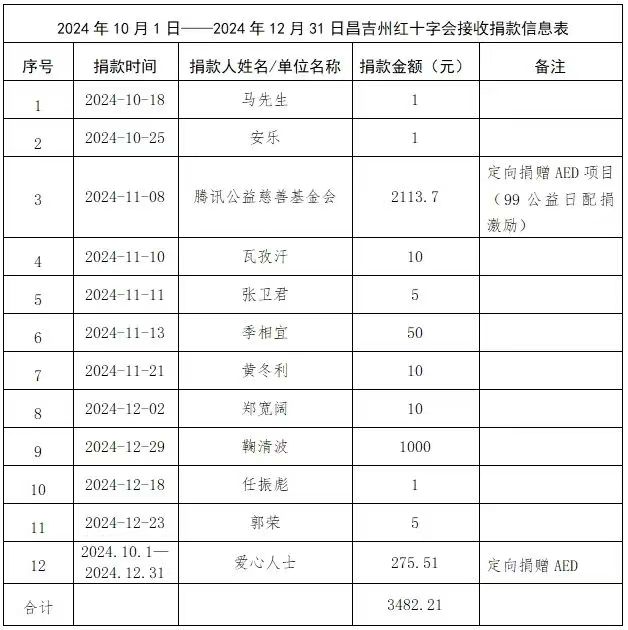 昌吉州红十字会2024年第四季度