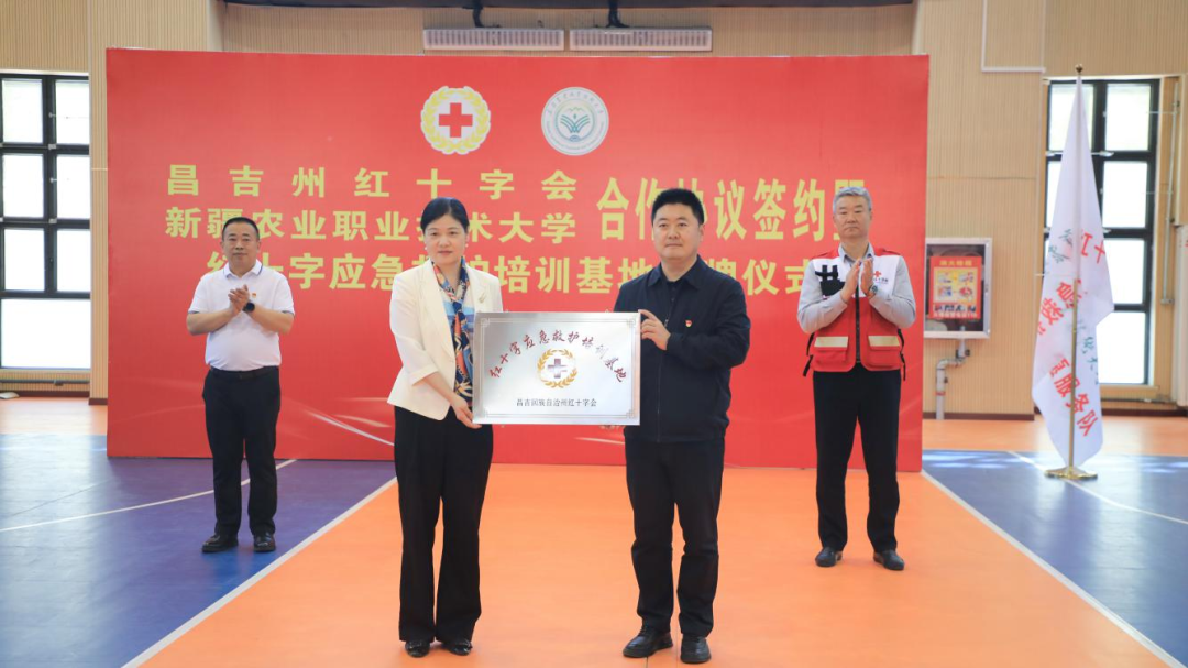 5月8日是第78个世界红十字日,一场具有里程碑意义的揭牌仪式在新疆农业职业技术大学举行,全州首家由红十字会与高校合作共建的应急救护培训基地正式落成,开启了校会合作在应急救护培训领域新篇章。