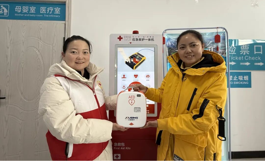 12月12日上午,玛纳斯县红十字会联合玛纳斯县文旅局,在肯斯瓦特旅游景区正式投放AED(自动体外除颤仪)及应急救护一体机。该一体机集AED(自动体外除颤仪)、急救包、交互大屏于一体。其中,有着“救命神器”之称的AED(自动体外除颤仪),能够有效提升心源性猝死的抢救成功率。