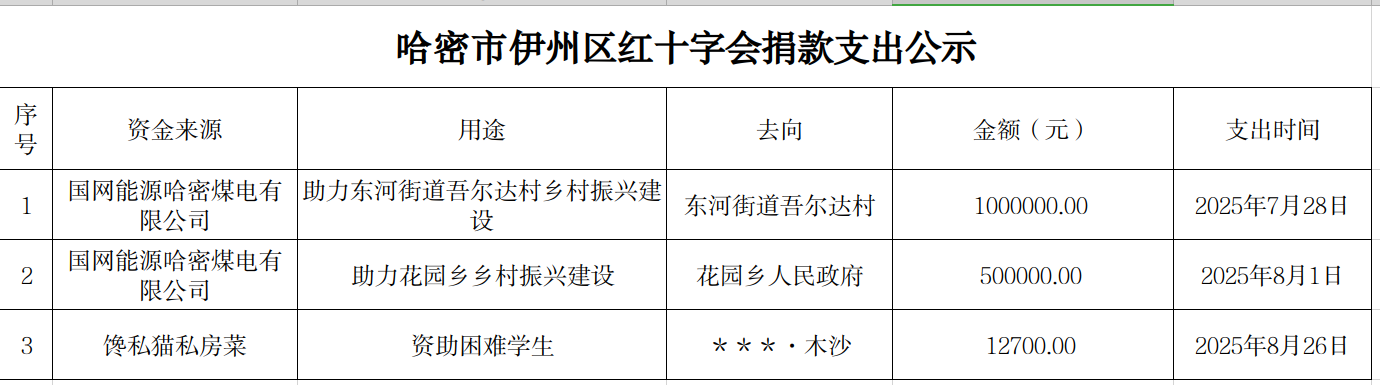 哈密市伊州区红十字会捐款支出公示