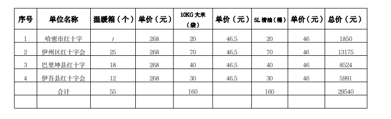 新疆维吾尔自治区红十字会调拨 哈密市红十字会“博爱送万家”物资使用情况公示