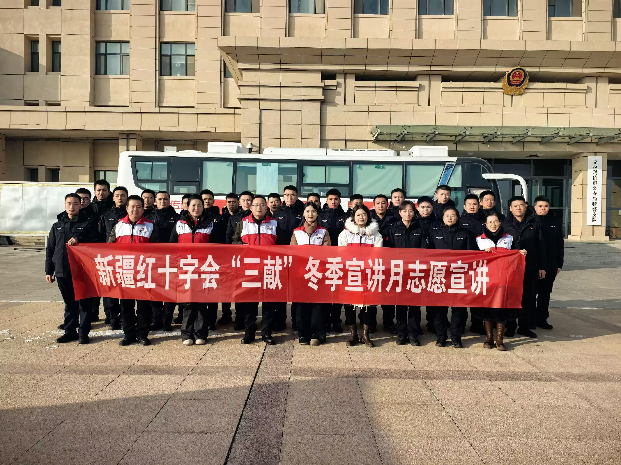 1月的克拉玛依,寒风凛冽。与低温一同到来的,是临床用血储备的季节性紧张。为保障生命用血需求,市红十字会发出了无偿献血的温暖倡议。令这份倡议得到铿锵回响的,是一支特别的队伍——克拉玛依市公安局特警支队,1月12日,克拉玛依市公安局特警支队的27名队员(25名男警、2名女警)选择用集体无偿献血的方式,再次践行“人民警察为人民”的初心使命,共计捐献热血7400毫升。
