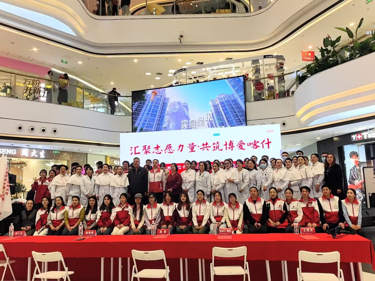 2025年12月13日,喀什地区“三献”(献血、献造血干细胞、献遗体器官)志愿服务大队授旗仪式在喀什东城万达隆重举办,此次授旗仪式由喀什地区红十字会主办,喀什地区第二人民医院、喀什地区中心血站、喀什地区红十字应急救援队、喀什大学、喀什职业技术学院协办,此次授旗仪式标志着喀什地区公益志愿事业迈入规范化、组织化新阶段?;疃山髦鞒秩丝。蚰?,现场气氛庄重而热烈。