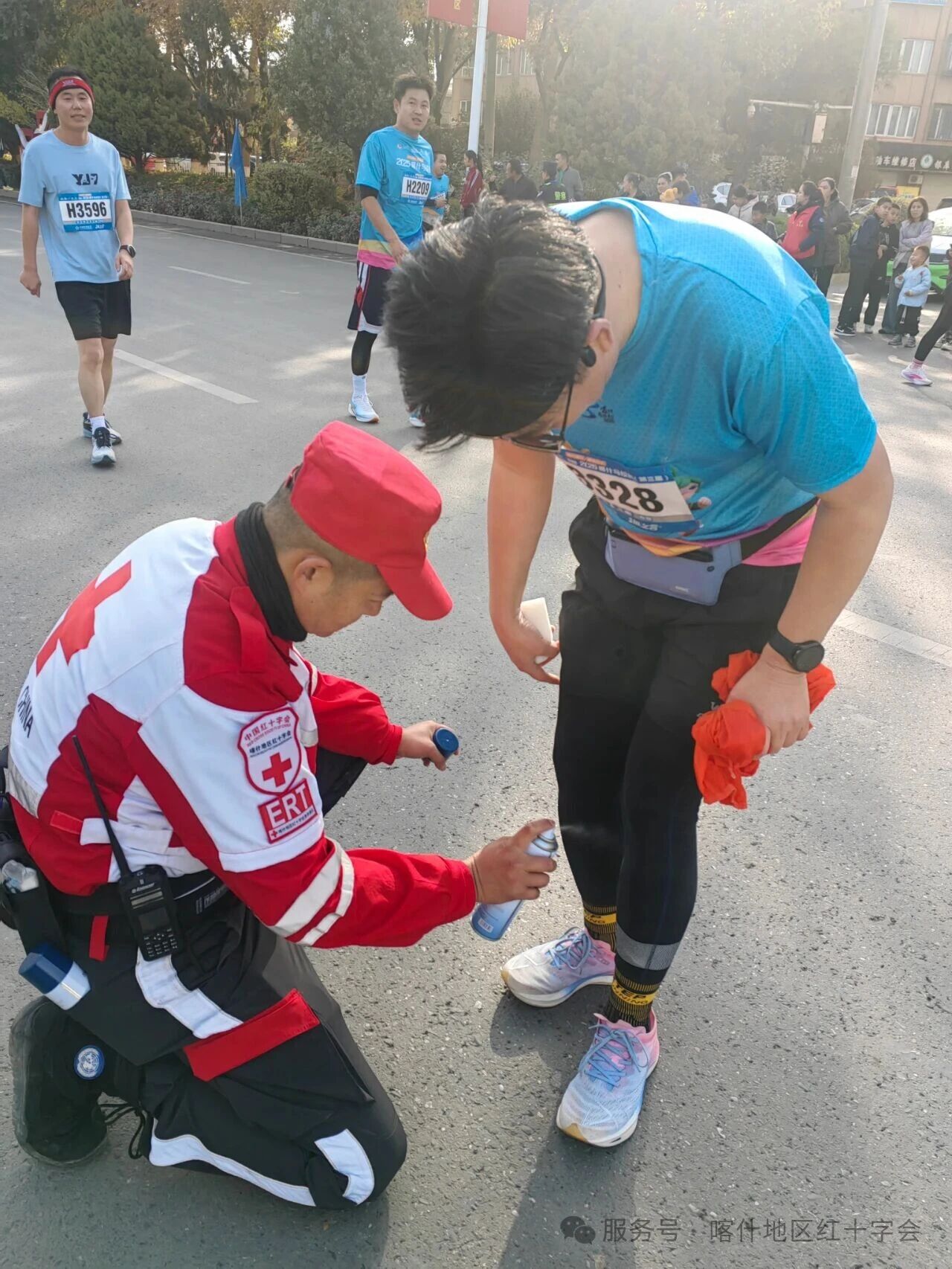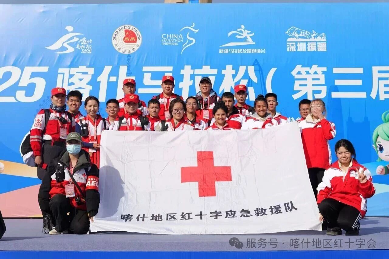 2025年11月2日,2025喀什马拉松在喀什市人民广场鸣枪开跑,喀什地区红十字应急救援队共出队10人,喀什六中青少年红十字志愿服务队出队9人。