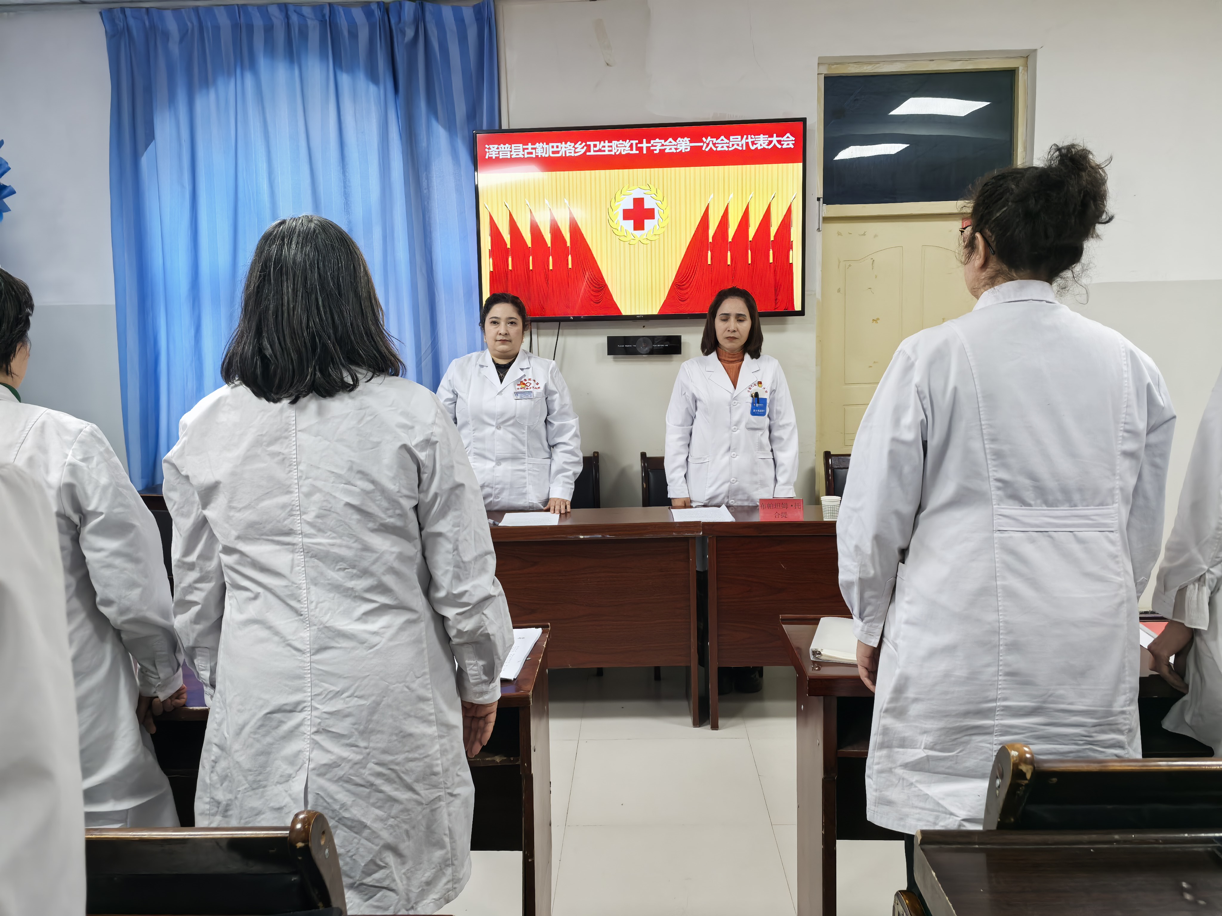 会议伊始,与会人员前往古勒巴格乡卫生院进行观摩,通过实地查看、听取介绍、查阅资料等方式,详细了解医疗机构红十字基层组织架构搭建、“三救三献”核心业务推进、志愿服务队伍建设、应急救护培训开展等情况。