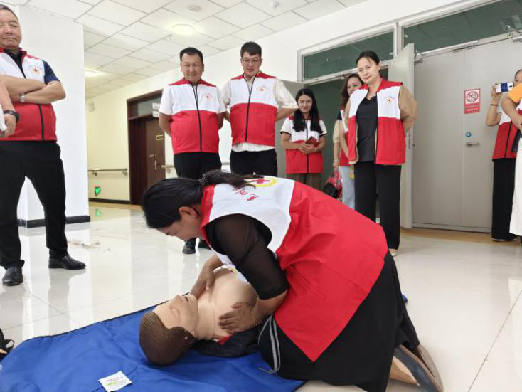 仪式后,克州红十字会应急救护培训师资对救援队开展应急救护培训,队员一起学习心肺复苏、AED使用等急救知识与技能,提升救援队应急救护能力。