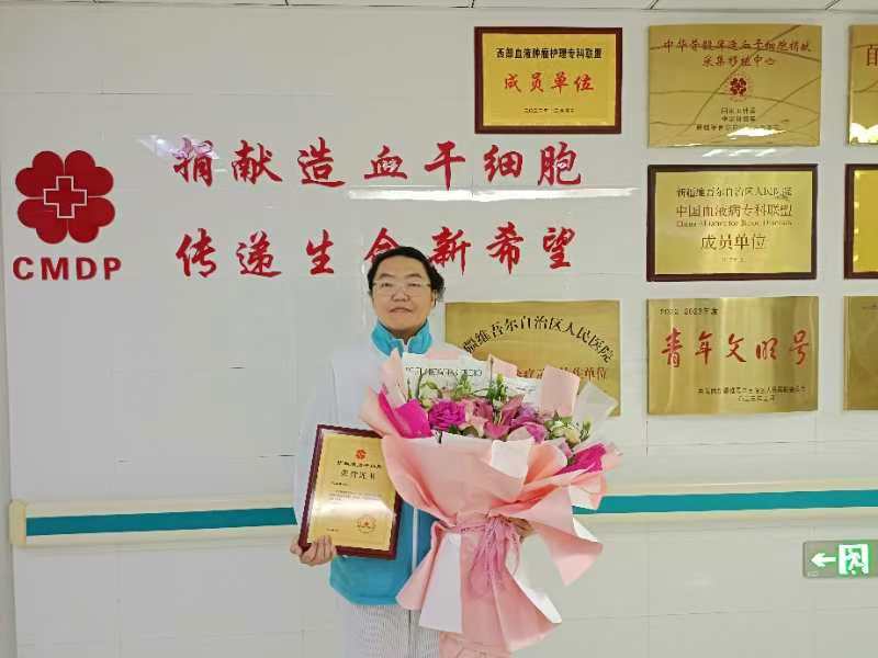 马女士是克州阿克陶县红十字会工作人员,2019年,马女士主动加入中华骨髓库,志愿成为中华骨髓库的一名造血干细胞捐献志愿者。
