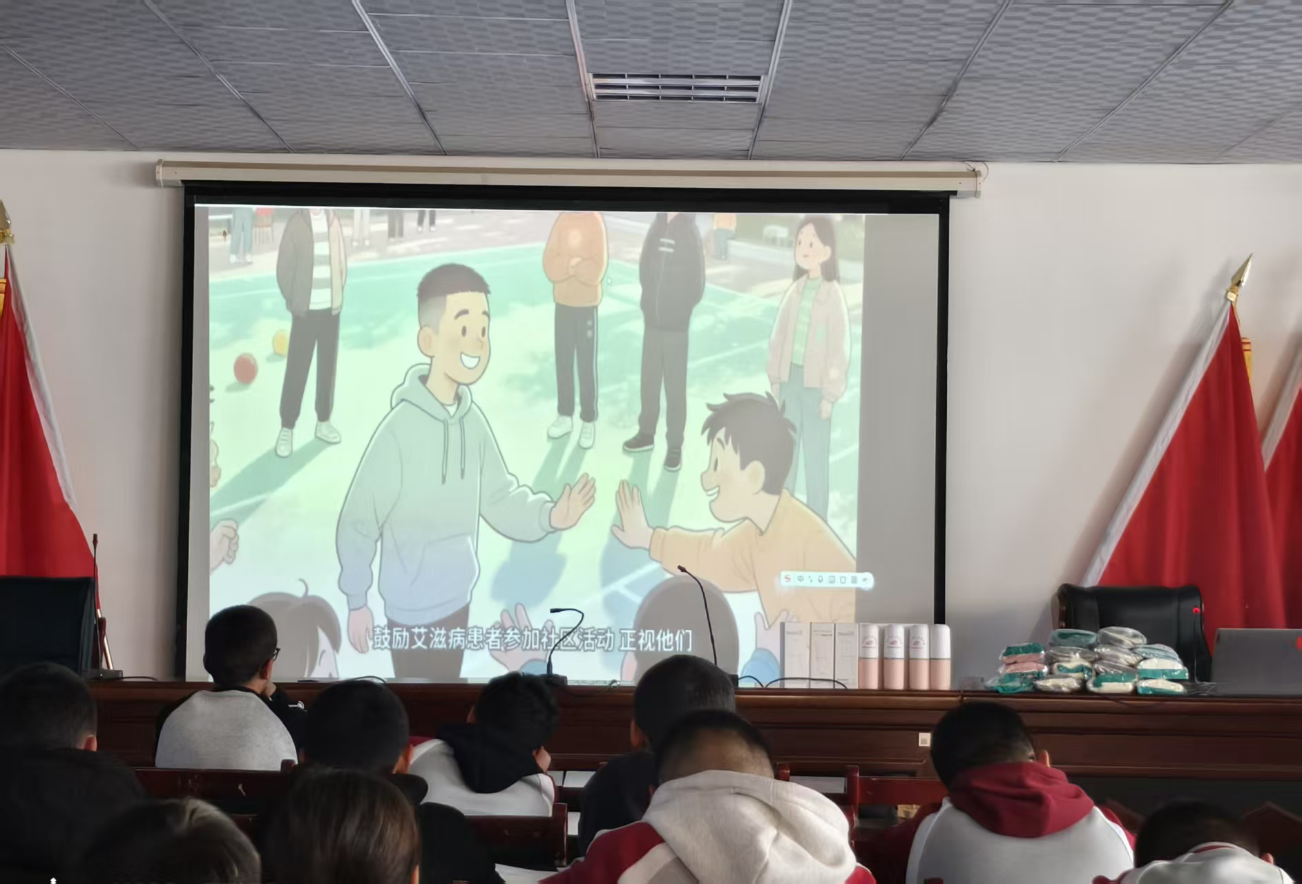 本次活动特别设置了影像观学环节,播放关爱艾滋病感染者主题视频。视频以贴近青少年的叙事方式,真实展现感染者的生活经历与情感历程,引发在场师生深刻共鸣。观看过程中,许多学生神情专注,为感染者遭遇的困境而动容,也为他们获得支持、重拾勇气而感动。观影后,工作人员组织学生分享感受。“原来他们和我们一样”“歧视比疾病更可怕”等真诚发言,逐渐消解了大家对艾滋病感染者的误解与距离,让“平等关怀、携手防艾”的理念深入人心。