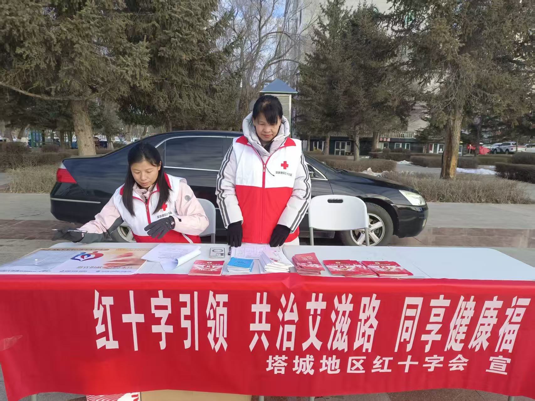 塔城地、市红十字会活动现场设置宣传咨询台、资料发放区与登记服务点,工作人员及志愿者通过悬挂主题横幅、展示科普展板、发放宣传手册等形式,向过往群众细致讲解艾滋病传播途径、预防措施及检测治疗相关知识,重点纠正“日常接触会感染艾滋病”等认知误区,引导群众树立科学防护理念,关爱艾滋病感染者群体。