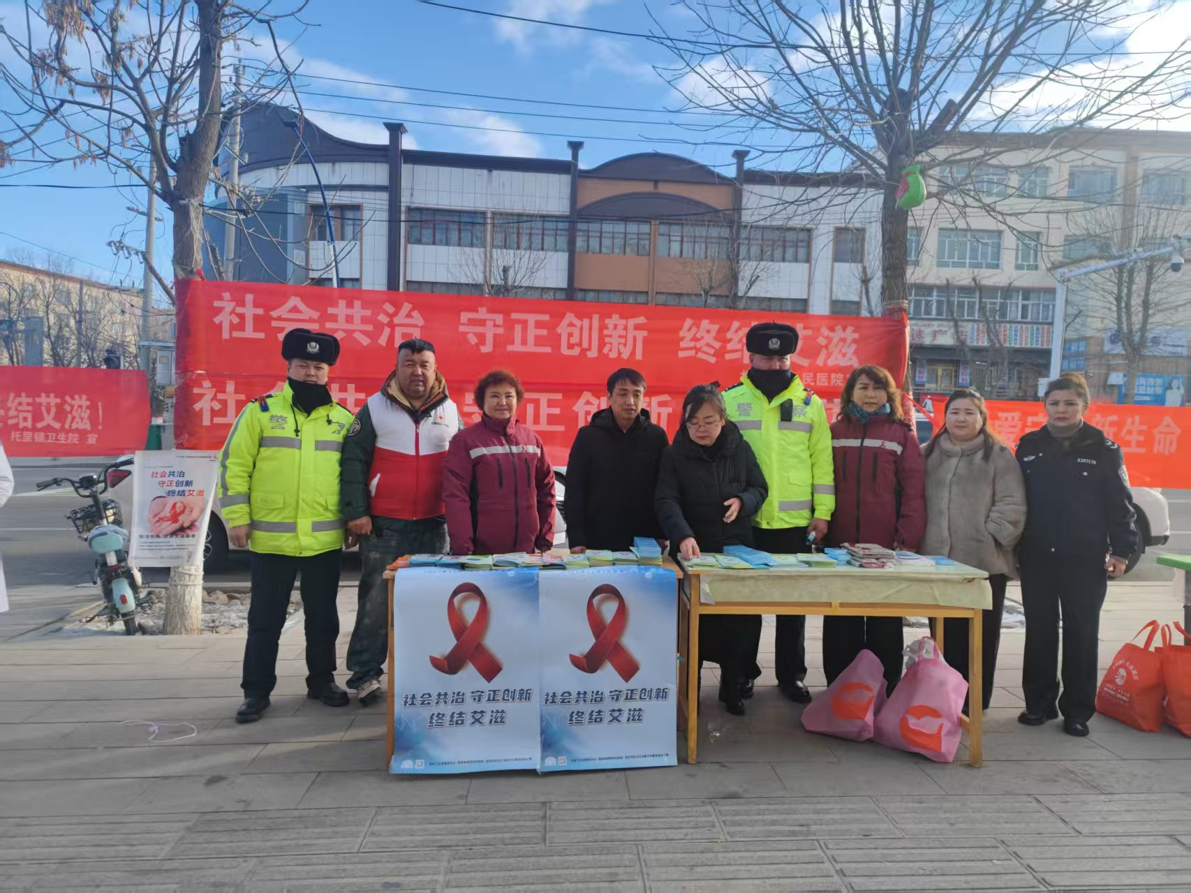 塔城地区托里县红十字会联合县卫健委、疾控中心等单位,在腾龙广场开展艾滋病防治主题宣传活动,红十字志愿者与医护人员分工协作,向过往群众发放艾滋病防治手册、宣传折页等资料,用通俗易懂的语言讲解艾滋病的传播途径、科学预防方法及“四免一关怀”惠民政策,重点澄清“日常接触传染”等认知误区,引导群众消除歧视、科学防控。疾控中心专业人员为有需求的群众提供艾滋病快速检测服务,全程注重隐私?;?,让群众安心便捷地了解自身健康状况。