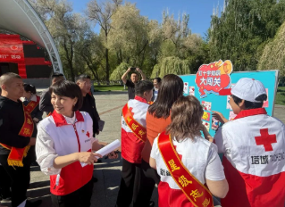 塔城地区红十字会设置宣传台发放红十字知识等宣传单;设置“红十字知识”、应急救护互动体验区,提高群众参与度。