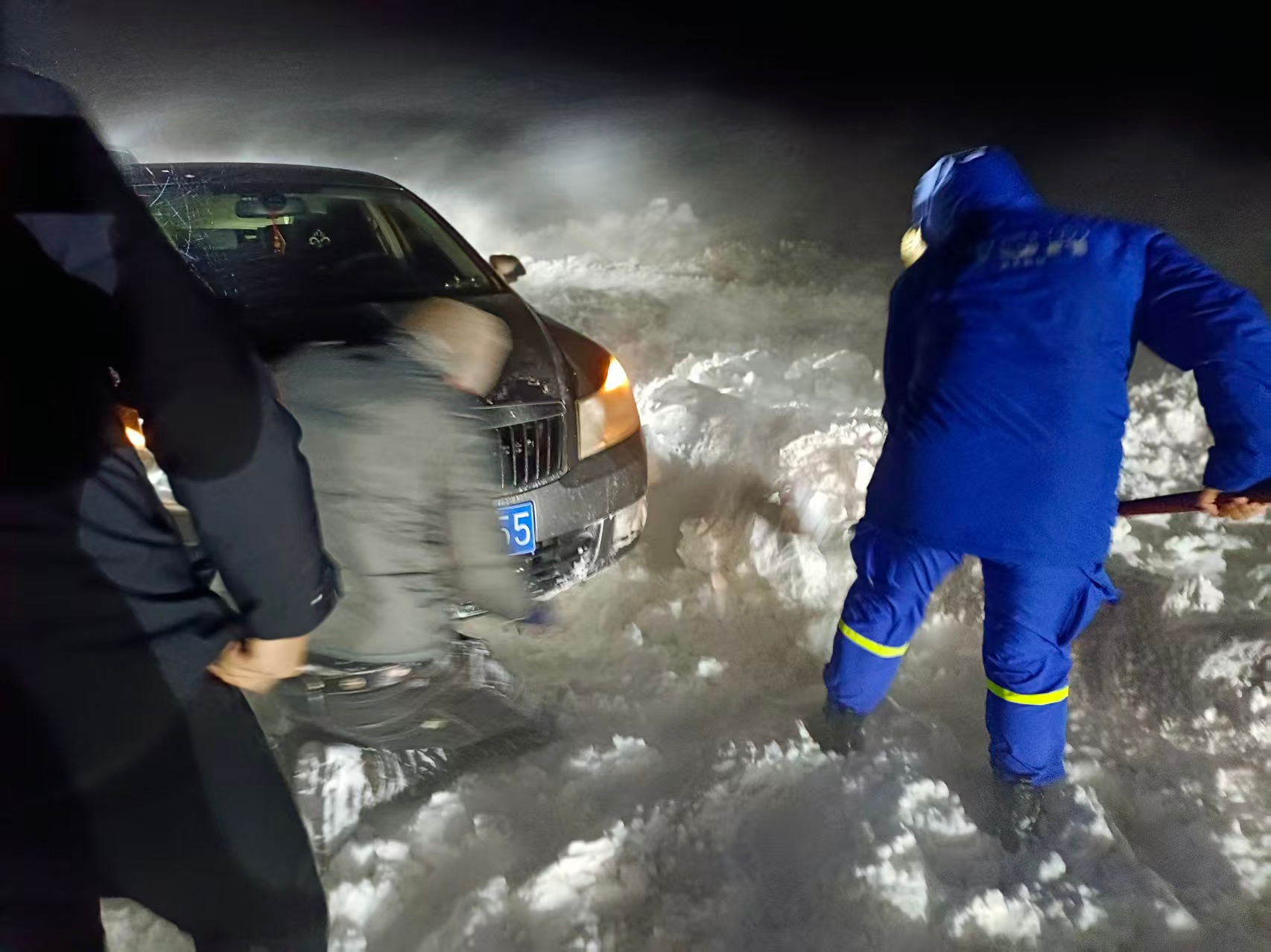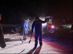 11月23日,在玛依塔斯开展风雪救援,塔城蓝天救援队出动2车7人,服务时长7小时。