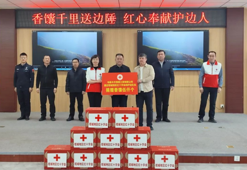 捐赠仪式上,乌鲁木齐博盾工贸有限公司博盾民族餐饮文化发展美都通过塔城地区红十字会向护边员队伍交接了5000个馕,地委政法委副书记于汝飞,地区红十字会党组书记、副会长刘艳艳分别讲话,护边员代表发言致谢。仪式结束后,文艺、书法、医疗、应急救护等4个小分队分别开展了文艺表演、赠送春联、健康义诊、应急救护演练等活动。