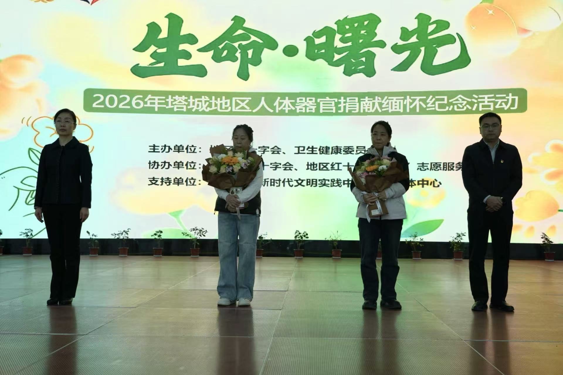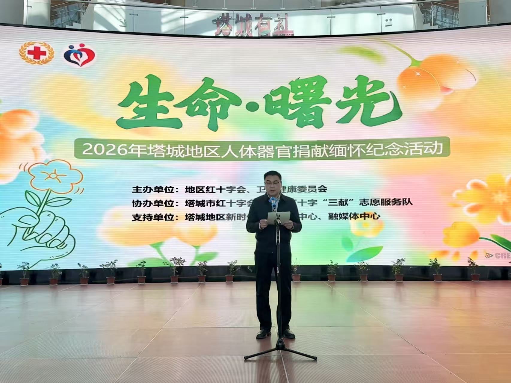 3月26日,为缅怀遗体和器官捐献者,弘扬“人道、博爱、奉献”的红十字精神,宣传人体器官捐献理念,塔城地区红十字会、地区卫生健康委员会联合在地区新时代实践文明中心开展以“生命·曙光”为主题的人体器官捐献缅怀活动,地区红十字会、卫健委、塔城市红十字会相关领导及工作人员,地市医疗机构医务工作者代表,人体器官捐献者家属代表,红十字“三献”志愿者,理事单位理事等73人参加活动,共同追思大爱之举的捐献者。