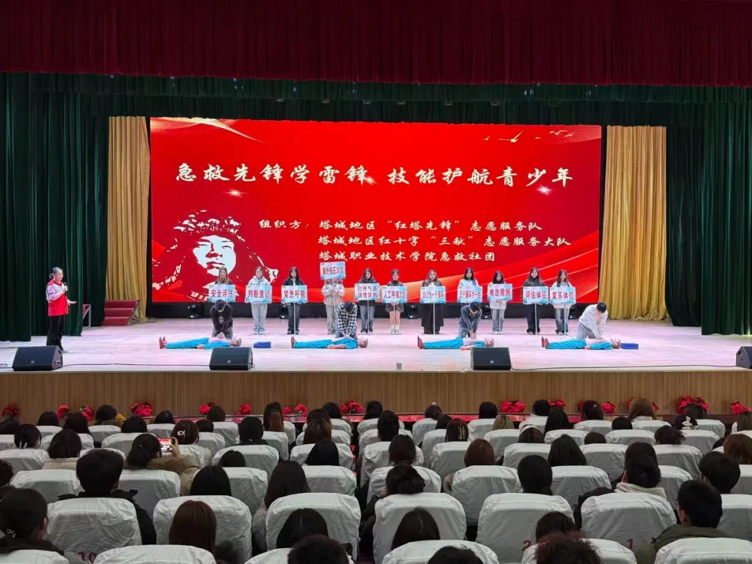 3月4日,地区红十字会红塔先锋志愿队走进塔城职业技术学院,为青年学生开展应急救护、健康知识等技能普及活动,把专业实用的自救互救技能送到青少年身边,助力青少年健康成长。