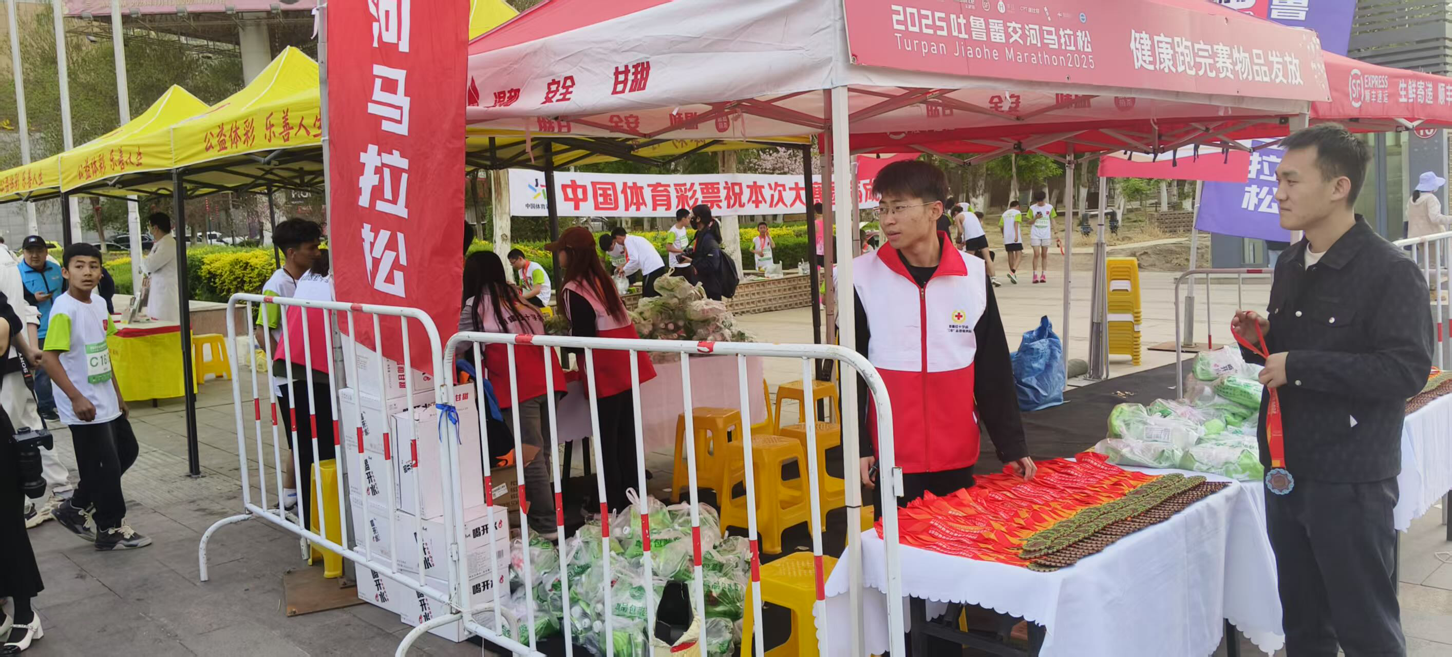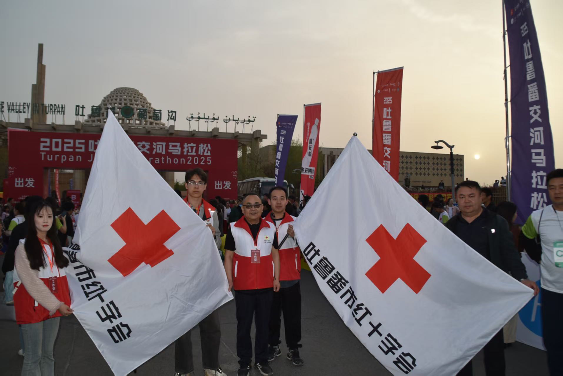 吐鲁番市红十字会作为马拉松赛组委会成员,积极组织红十字志愿者和AED为赛事提供服务和安全保障。赛前,市红十字会对50多名志愿者进行了应急救护和AED使用专门培训指导。比赛当天,吐鲁番市和高昌区红十字会工作人员、志愿服务大队志愿者和来自吐鲁番职业技术学院的学生志愿者共计30余人携带15台AED在马拉松赛全程各个点位为运动员提高AED健康保障和发放赛事物资、纪念品等志愿服务,受到参赛人员广泛好评。