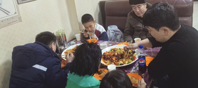 临近中午,红十字会干部一行来到领取中国红十字会总会“博爱送万家”物资的一个家庭,与他们唠家常、贴对联,帮助他们通过特定小程序从30种春节慰问物资套餐中选择最心仪的一种使用手机网上下单,喜迎马年春节的到来。