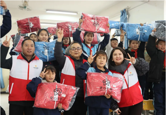 此次活动得到中华社会救助基金会的大力支持,捐赠物资经过精准对接,全面覆盖5所乡村学校的学生需求?;疃殖?,各场次严格按照既定流程有序推进,学校师生代表列队参与,领导及工作人员为学生们逐一发放冬衣,孩子们佩戴红领巾敬礼致谢,一张张笑脸洋溢着温暖与感恩。