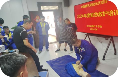 红十字救护培训走进天合光能(库米什镇)有限责任公司开展救护员培训班,不仅提高了企业员工的应急救护能力,还为企业的安全生产和员工的健康保障工作注入了新的动力。