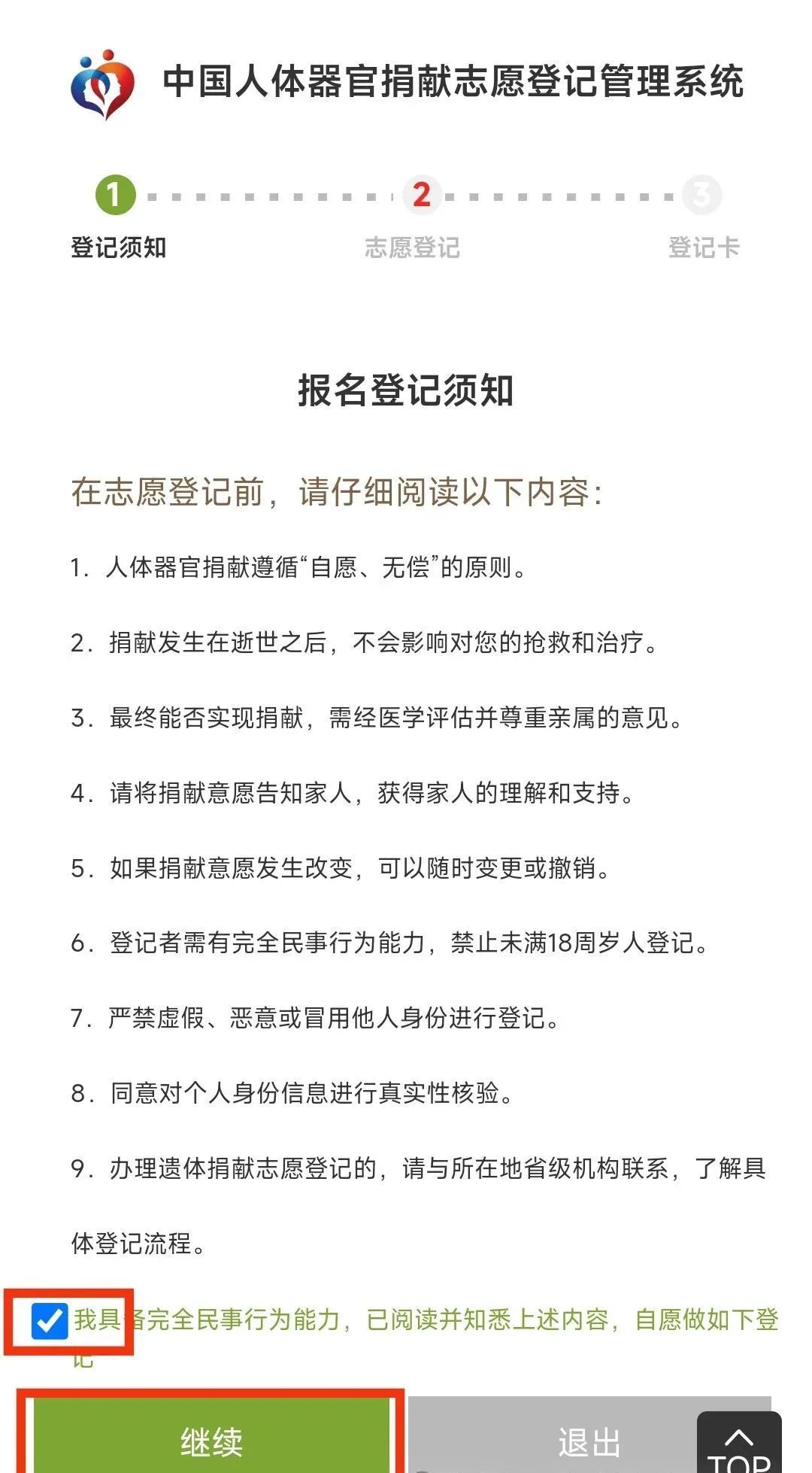 3详细阅知报名登记须知,点击最下方“我具备完全民事行为能力,已阅知并知悉上述内容,