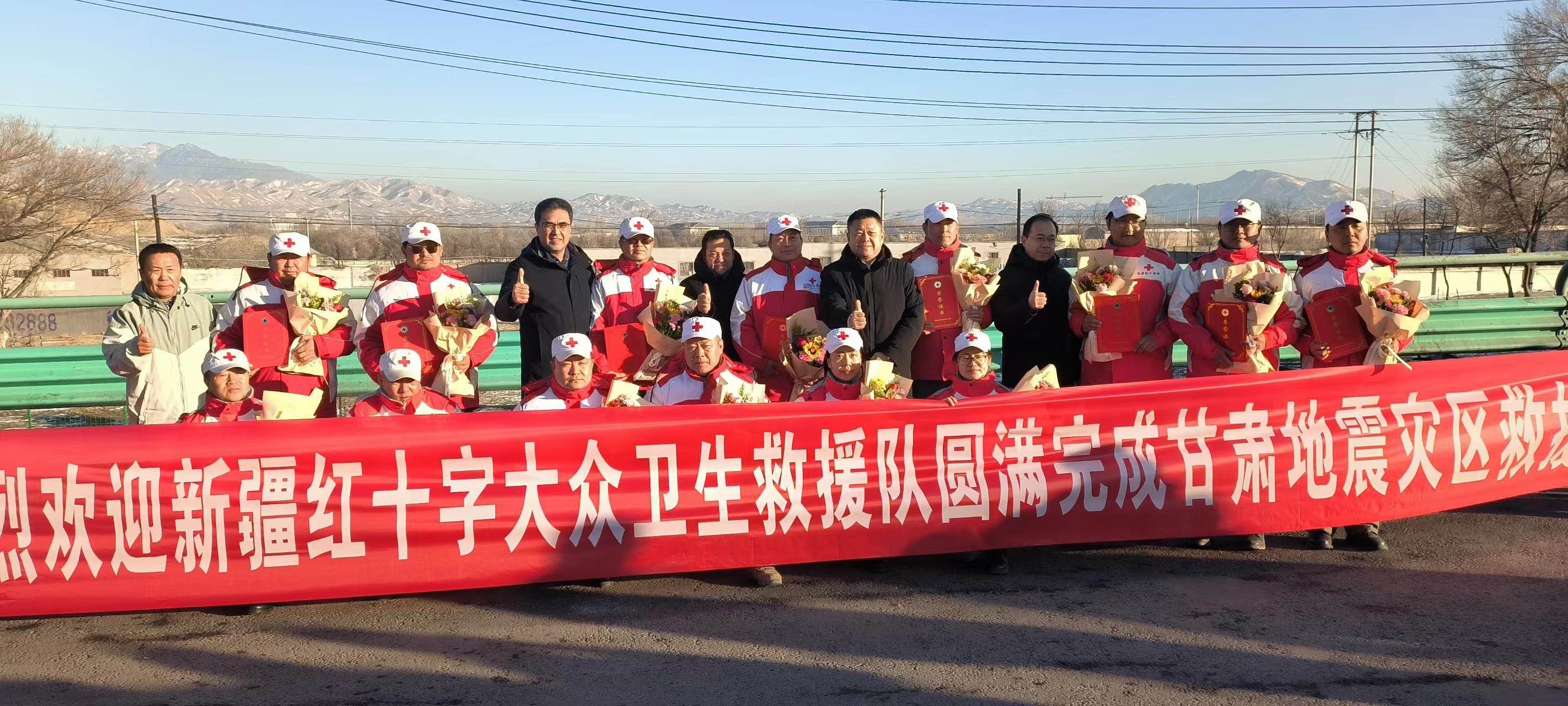 在热烈的欢呼声和掌声中,1月4日下午17时,驰援青海海东市和甘肃积石山县地震灾区的新疆红十字大众卫生救援队完成任务凯旋归来。