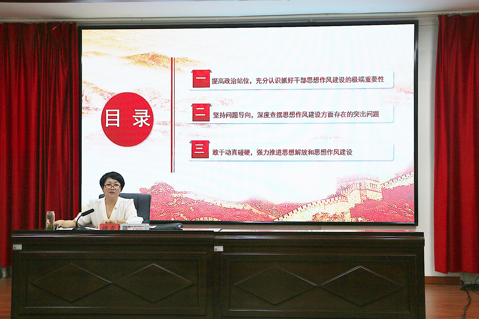 隋霞在授课时指出,习近平总书记在河北雄安新区考察并主持召开高标准高质量推进雄安新区建设座谈会时强调“各级党组织要认真开展主题教育,并以此为契机,加强调查研究,推动思想大解放、能力大提升、作风大转变、工作大落实,进一步提升政治功能和组织功能。”抓好思想作风建设是解放思想和扎实开展好主题教育的必然要求、是推动党中央决策部署和自治区党委部署安排落地见效的必然要求、是推动自治区红十字事业实现高质量发展的必然要求。隋霞紧密结合参加主题教育的所学所思、所感所悟,从抓好干部思想作风建设的极端重要性、深度查摆思想作风建设方面存在的突出问题以及如何推进思想作风建设三方面切入,立足自治区红十字事业发展大局,紧贴机关工作实际,坚持问题导向,对党员干部思想作风方面存在的共性问题和个性问题进行梳理剖析,条理清晰、逻辑严密、案例生动详实。