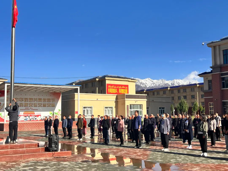 6月26日上午,自治区红十字会参加“民族团结一家亲”活动的干部和驻村工作队以及村民一同举行升国旗仪式。伴随着慷慨激昂的国歌声,五星红旗缓缓升起,迎风飘扬,大家行注目礼,齐唱国歌。升旗仪式结束后,结亲干部和村民们一起聆听党的二十大精神宣讲,参加了安全生产宣传教育。