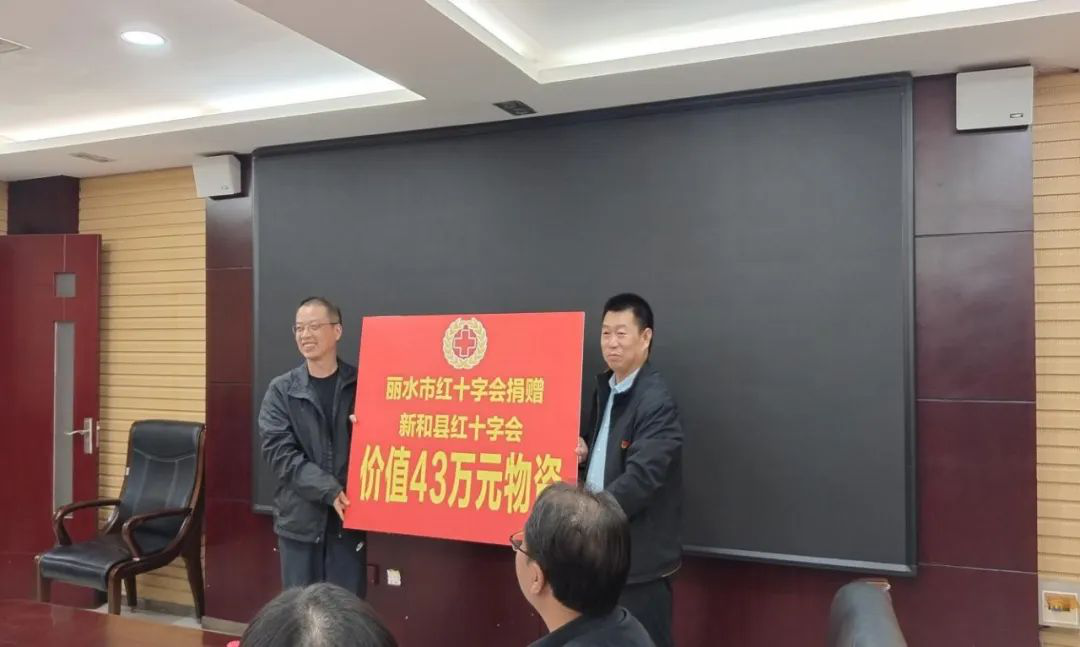 捐赠仪式上,丽水市红十字会向新和县红十字会捐赠了价值达43万元的物资,对新和县红十字会工作给予大力支持。为表示感谢,新和县红十字会向丽水市红十字会赠送了一面写有“万里援疆送温暖 情暖千万百姓家”的锦旗。